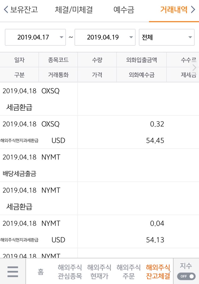 만약 거래내역에 해외주식현지과세환급금이 있다면, 미수금 잔고를 체크해보는게 좋을 것 같습니다.