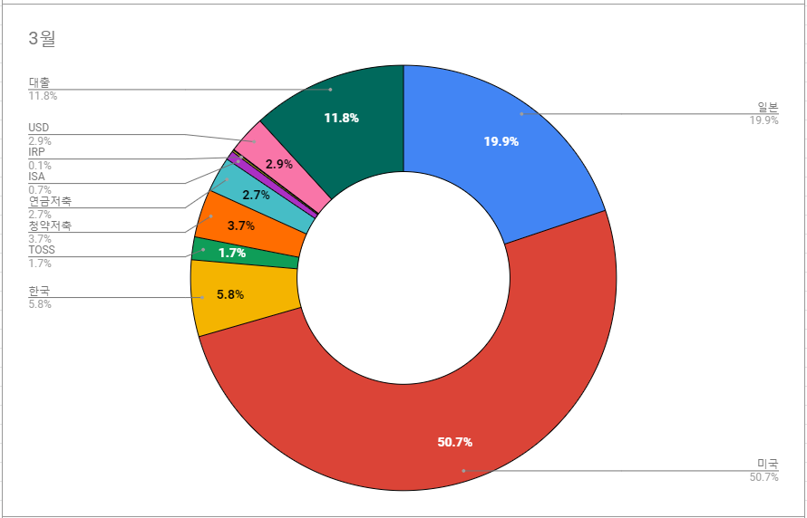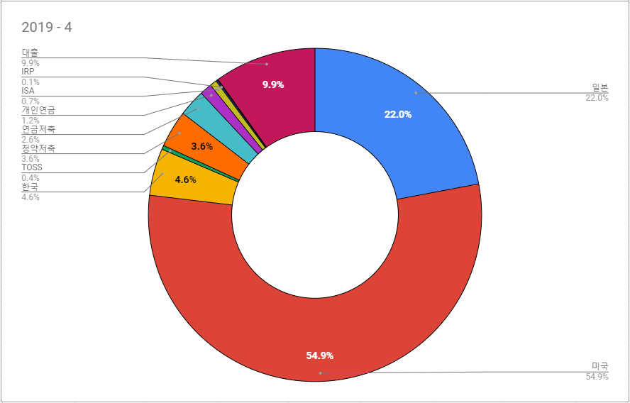 4. 원화로 환산해서 결산 하다보니, 미국 자산이 3월에 비해 4월에 5%증가 했습니다.