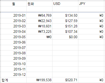 2019년 월별 금융 소득 합계