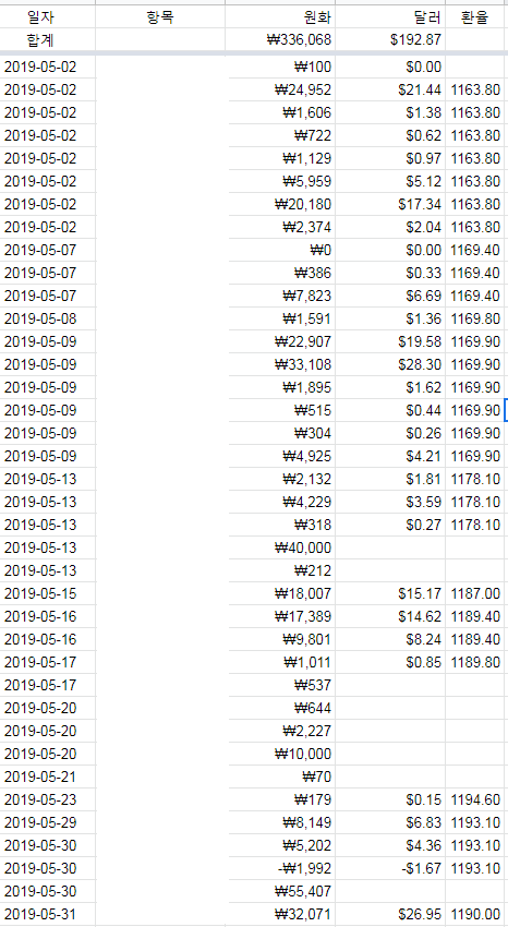 >> 5월에도 달러 환전은 없고, 달러 배당금만 재투자 했습니다.