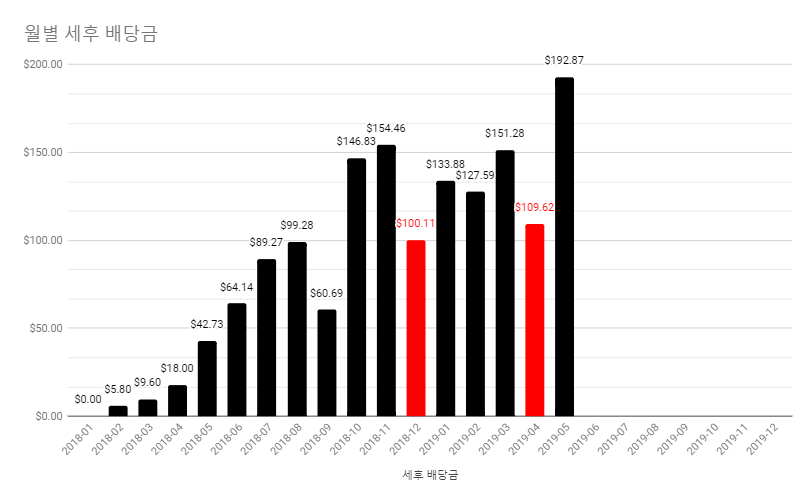 2019년 미국 월별 배당 내역