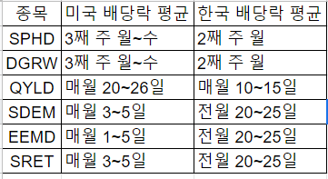 미국 배당락 평균 : ETF의 실제 배당락일