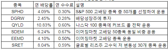 포트폴리오에 나오는 배당 ETF 종류입니다.
