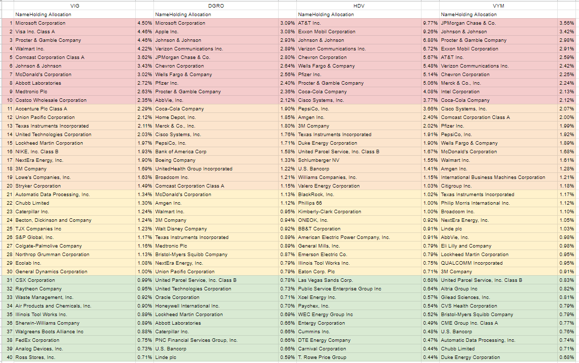 2019-10-11 ETF.COM 기준으로 구성 종목 상위 40개 목록입니다.