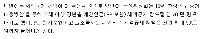 연말정산으로 세금 추가 납부하거나 세액공제가 필요하신 분은 해당 상품을 통해 절세 고려해 볼만 하다.