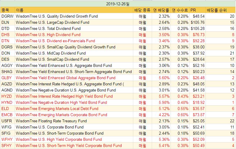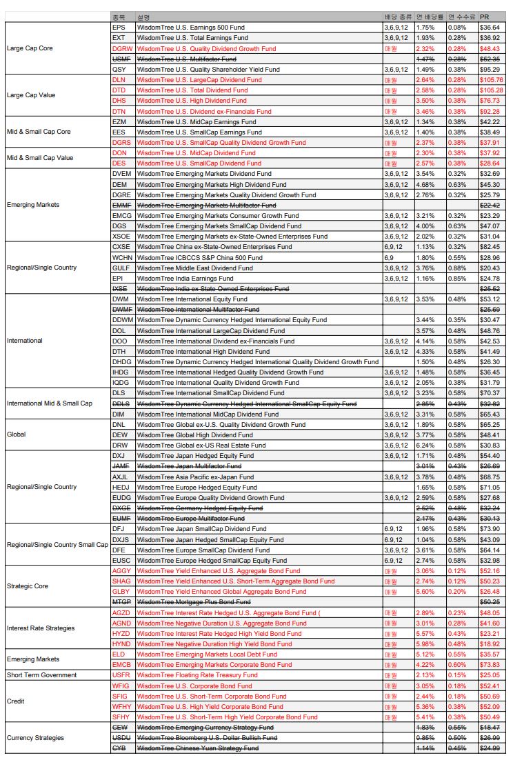 wisdomtree 월 배당 ETF 목록