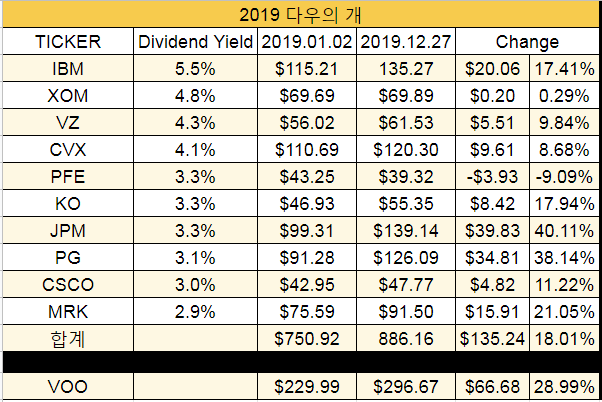 2019/01/21 - [투자 전략/투자 전략] - 2018 다우의개 결과와 2019 다우의 개 목록