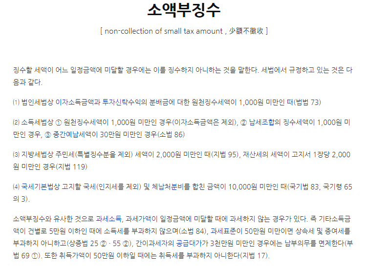 소액부 징수는 각 배당 주식에 따로 적용됩니다.