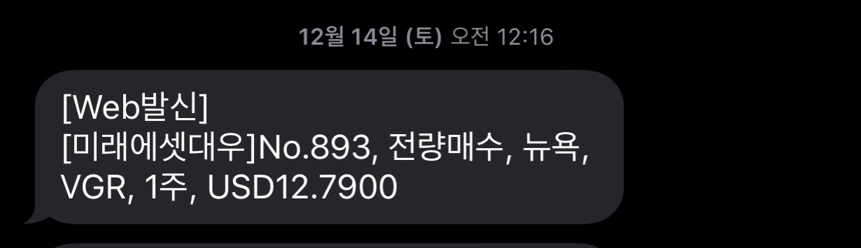 테스트는 지난 12월 14일 토요일 매수 주문했습니다