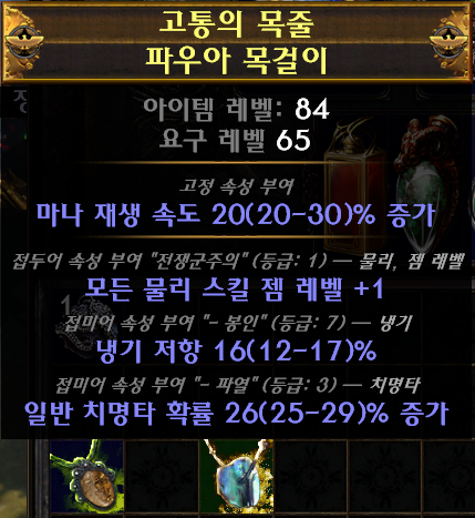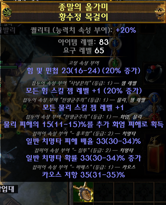 파우아 목걸이를 파괴하고 황수정 목걸이에 영향력 옵션 2개가 합쳐집니다.