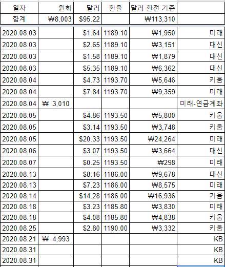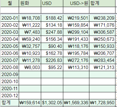2020년 8월 결산입니다.