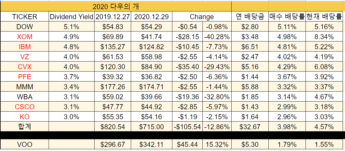2020년에 야심 차게 시작했던 다우의 개 2회 차는 위와 같이 약 -13%로 마무리되었습니다.