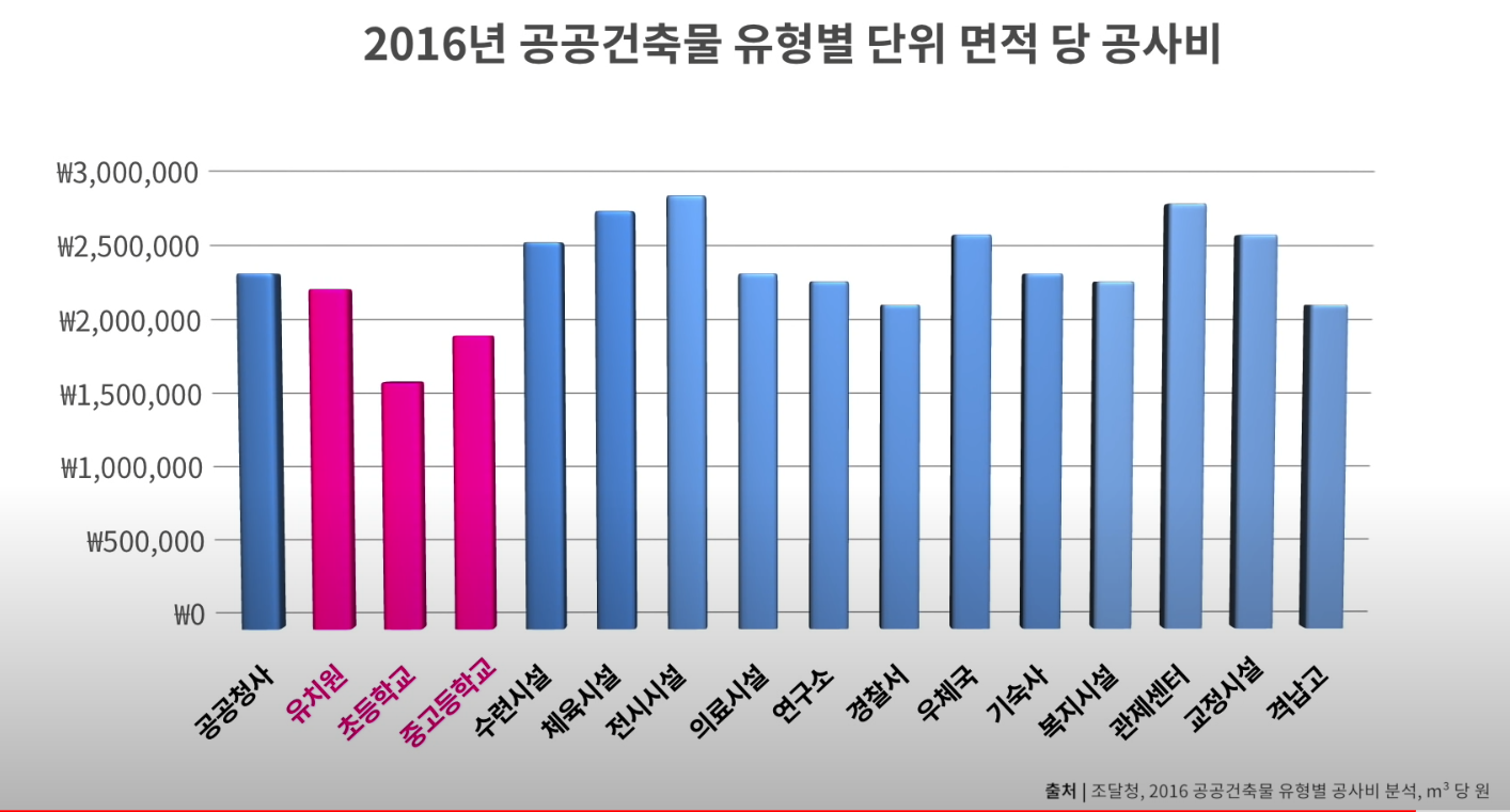 2016년 공공건축물 유형별 단위 면적당 공사비
