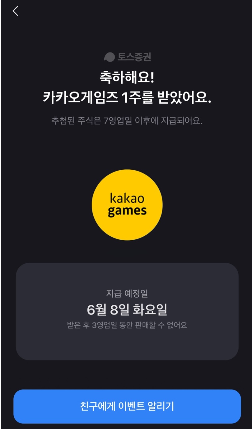 대우건설 1주, 카카오 게임즈 1주 받았습니다.