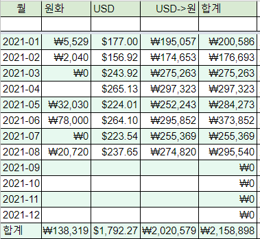 2021년 8월 결산입니다.
