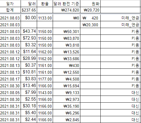 - 연도별 8월 배당금