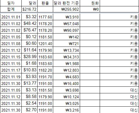 - 연도별 11월 배당금